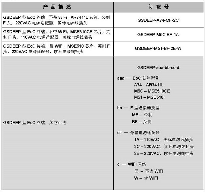 GSDEEP 上聯(lián)同軸電纜以太網(wǎng)頭端,下聯(lián)用戶(hù)家中的電腦、電視機(jī)或機(jī)頂盒等,為 同軸電纜接入網(wǎng)的最后 100 米提供了雙向交互功能的解決方案。